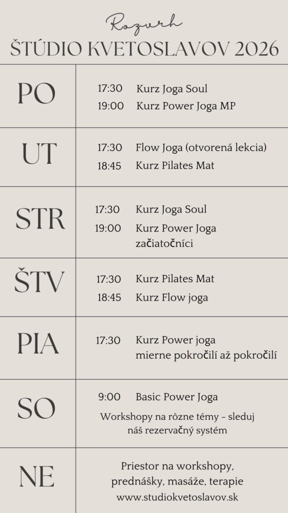 Dňa 22. 11. 2021 sme otvorili priestory nášho nového štúdia, kde sa v prvom rade venujeme skupinovému aj individuálnemu cvičeniu Power Jogy. Okrem Power Jogy u nás prebiehajú lekcie Jogy Soul, Flow jogy vinyasy, ako aj lekcie pilatesu mat so zameraním na pevný stred tela. Medzi ďalšie aktivity patrí napríklad baletný krúžok pre najmenšie detičky. Všetky krúžky, kurzy a lekcie u nás vedú certifikovaní inštruktori (odborníci v danom obore).
